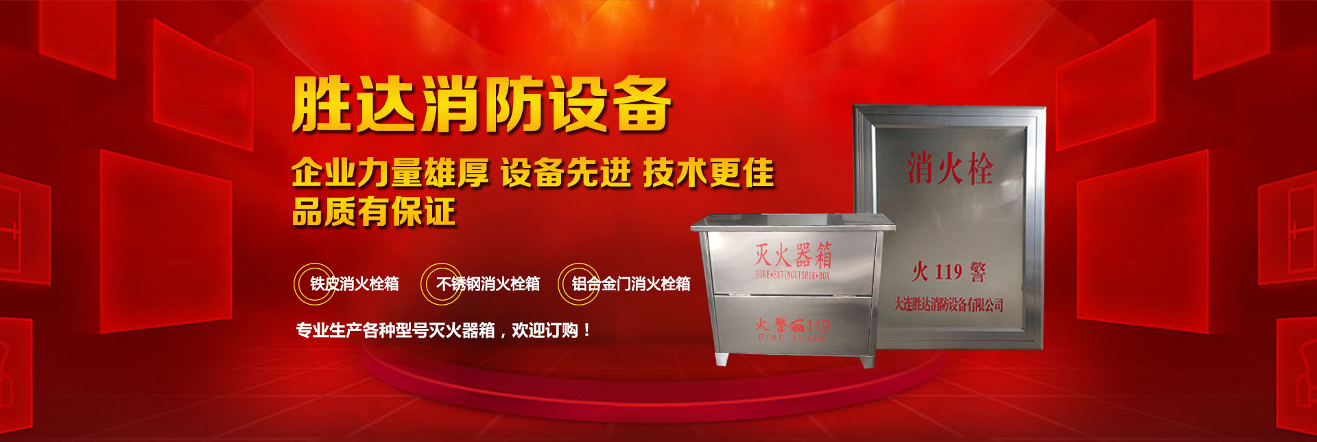 大連勝達(dá)消防設(shè)備有限公司本公司企業(yè)力量雄厚、設(shè)備先進(jìn),生產(chǎn)的所有消防產(chǎn)品均符合國家GB14561—J標(biāo)準(zhǔn),品質(zhì)有保證。我公司地理位置優(yōu)越,位于大連市甘井子區(qū)西北路847號(hào)交通便捷,公司專業(yè)生產(chǎn)各種型號(hào)滅火器箱、消火栓箱、鐵皮消火栓箱、不銹鋼消火栓箱、鋁合金門消火栓箱。消火栓箱系列產(chǎn)品,全部按照國家標(biāo)準(zhǔn)和行業(yè)標(biāo)準(zhǔn)進(jìn)行生產(chǎn),并通過國家合格鑒定,得到了國家固定滅火系統(tǒng)和耐火構(gòu)件質(zhì)量監(jiān)督檢驗(yàn)中心的產(chǎn)品認(rèn)證和產(chǎn)品形式報(bào)告書。我們的消火栓箱系列產(chǎn)品具有外形美觀、結(jié)構(gòu)先進(jìn)、開啟靈活、使用可靠、消火應(yīng)急燈具標(biāo)志清晰、光色好、功耗低、使用壽命長、安裝使用簡便,可廣泛應(yīng)用于高層建筑和工業(yè)等一些公關(guān)場所使用。